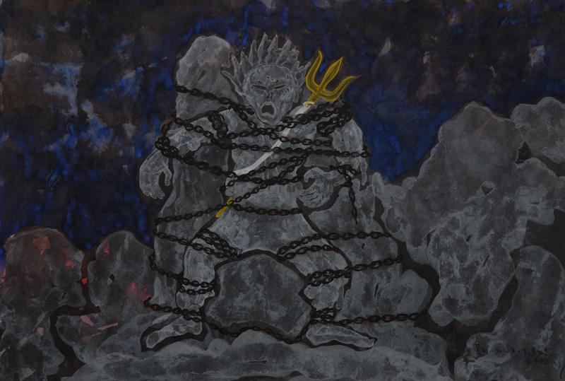 µ¹¸æÀ̸¦ °ð ´øÁú µíÀÌ ÆÈÀ» µé¾î ¿Ã¸®¸ç ¶Ç ¾ÇÀ» ½è´Ù. ±×ÀÇ µî¿¡ µÑ·¯¸Ç »ïÁöâÀÌ ³ë¶õºûÀ» ¹øÂ½¿´´Ù.